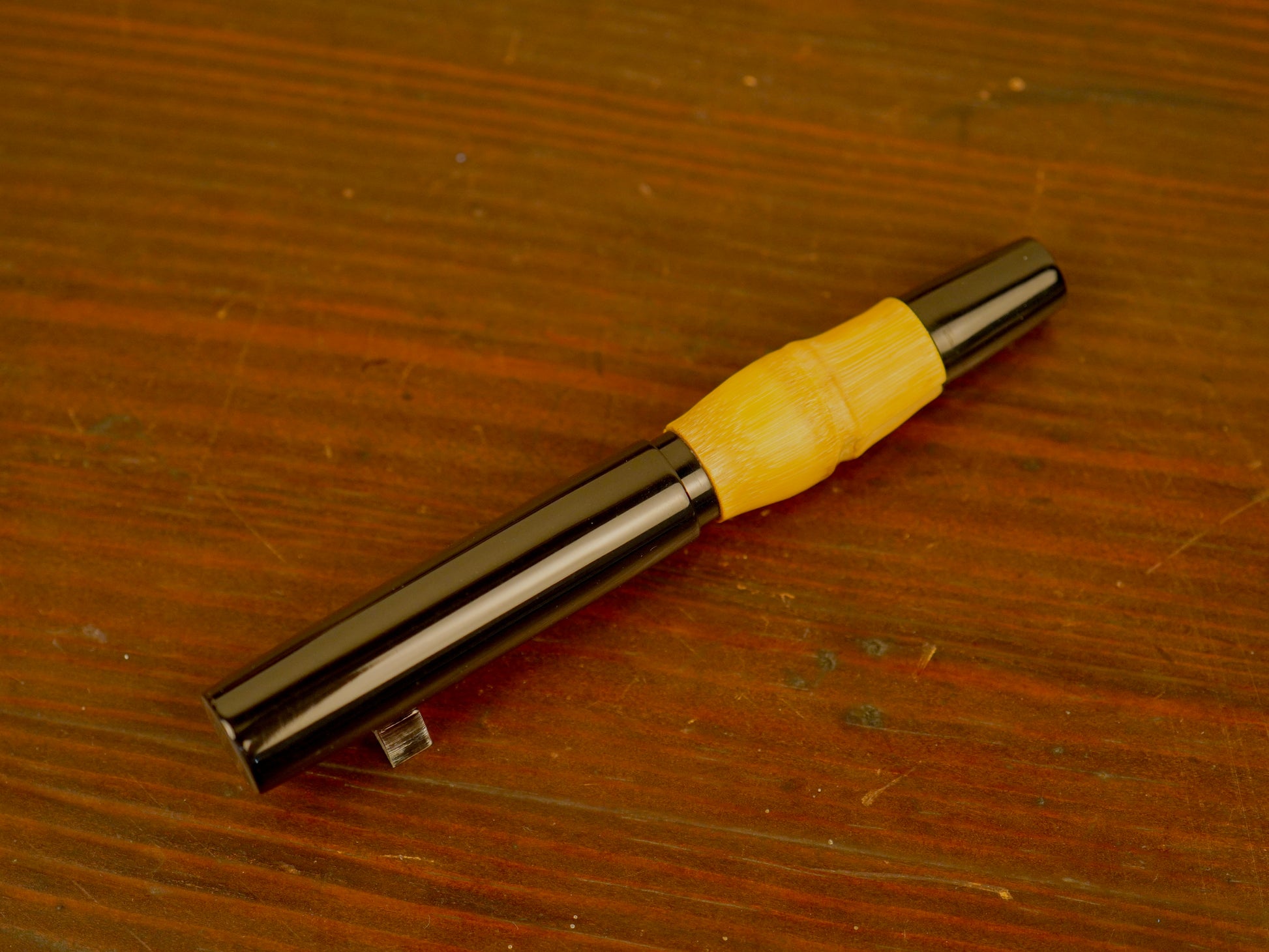 ショート+に布袋竹を採用しました。この杢軸とは少し違う触感が心地良い…気がつくと人差し指と親指の腹の部分で撫でている。少し想いに耽っていると、また指で撫でている。これは思索にはちょうど良いかもしれない。