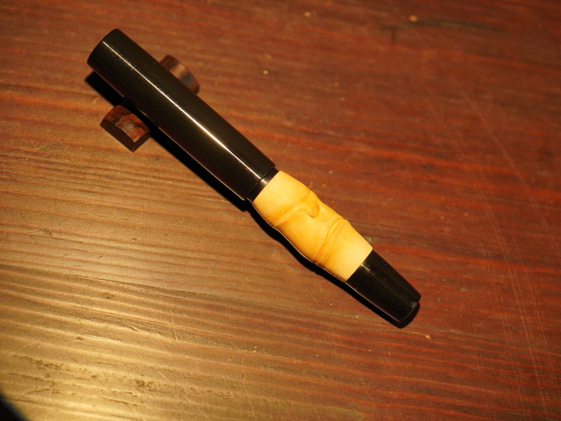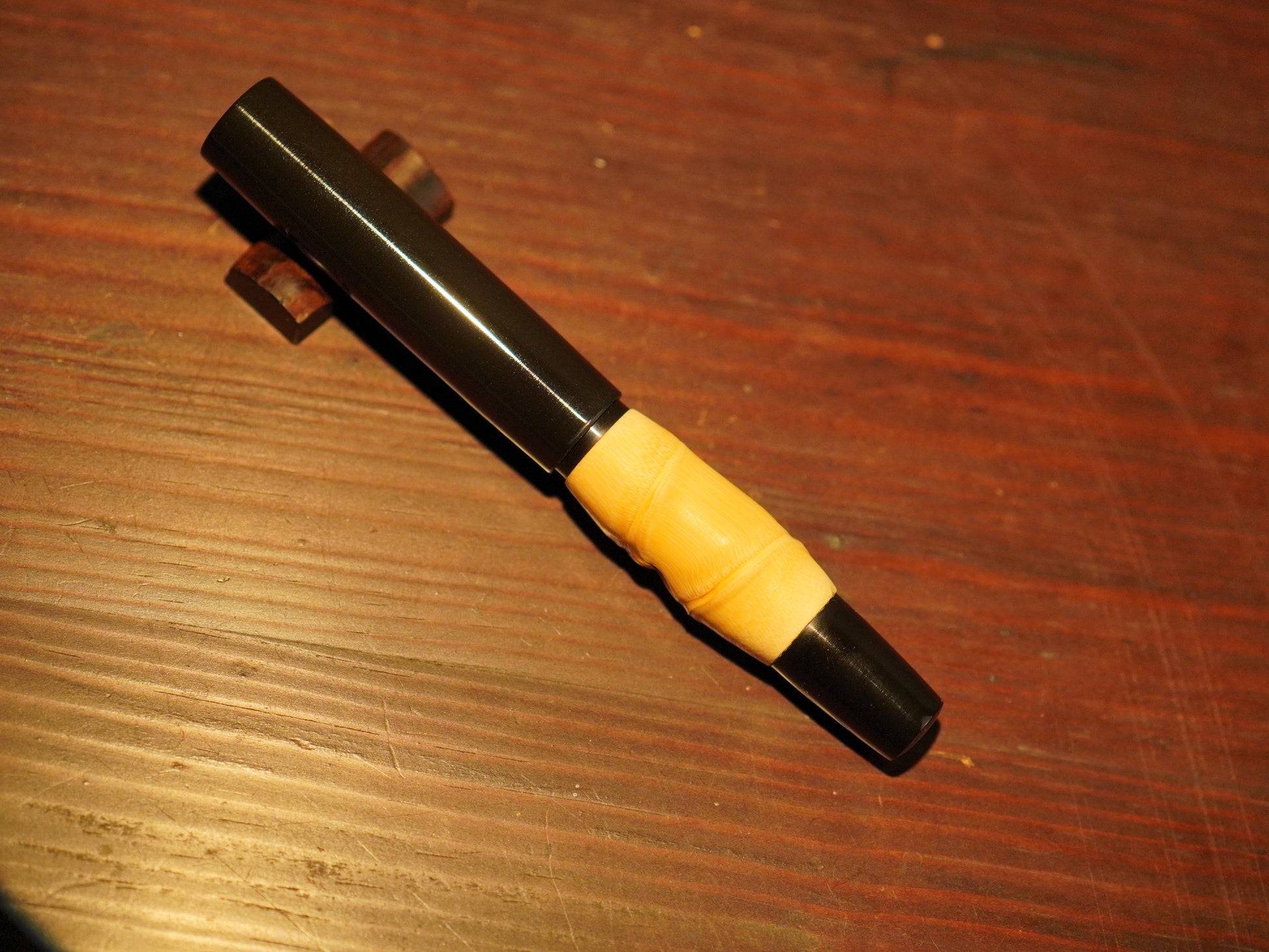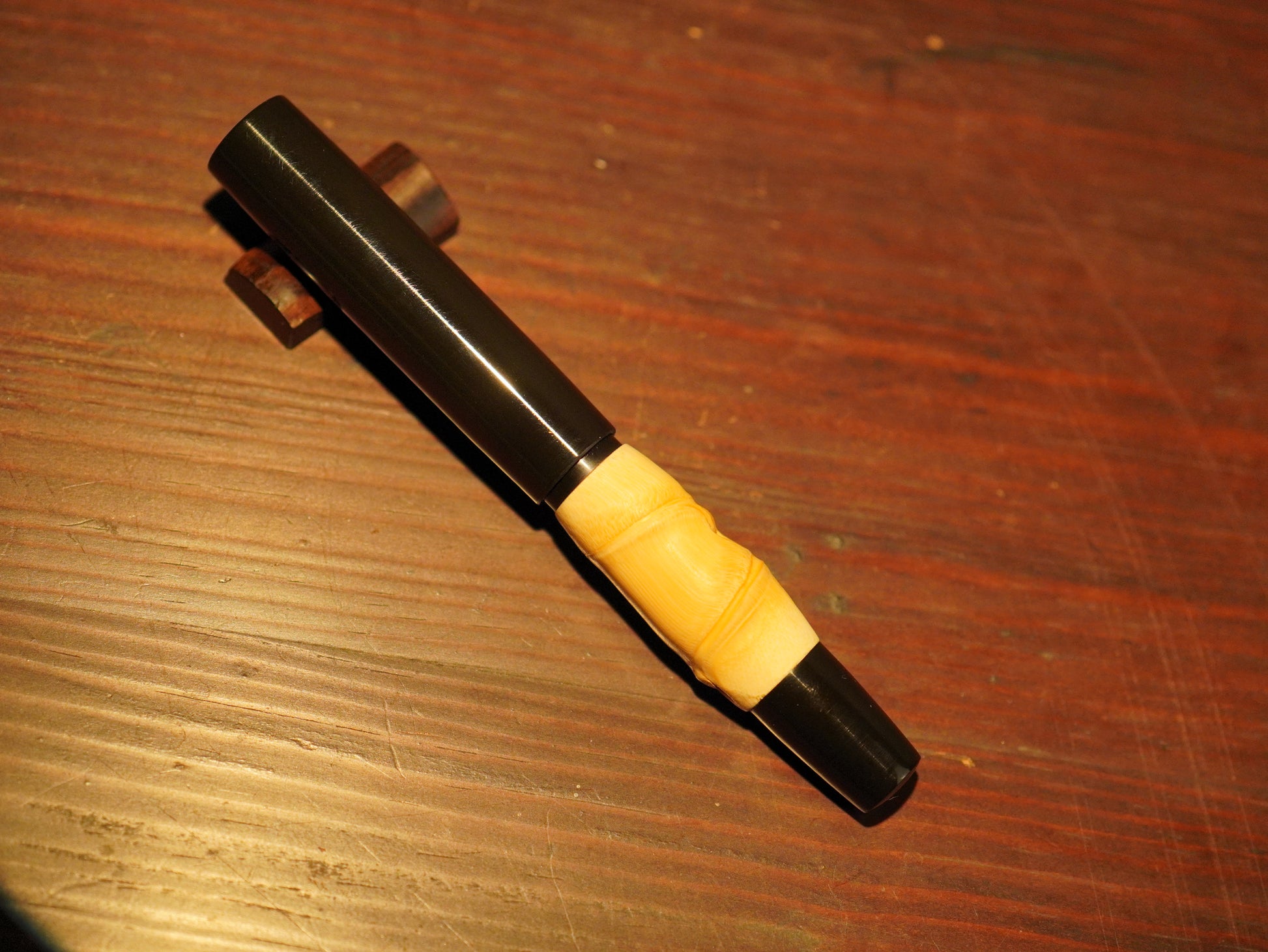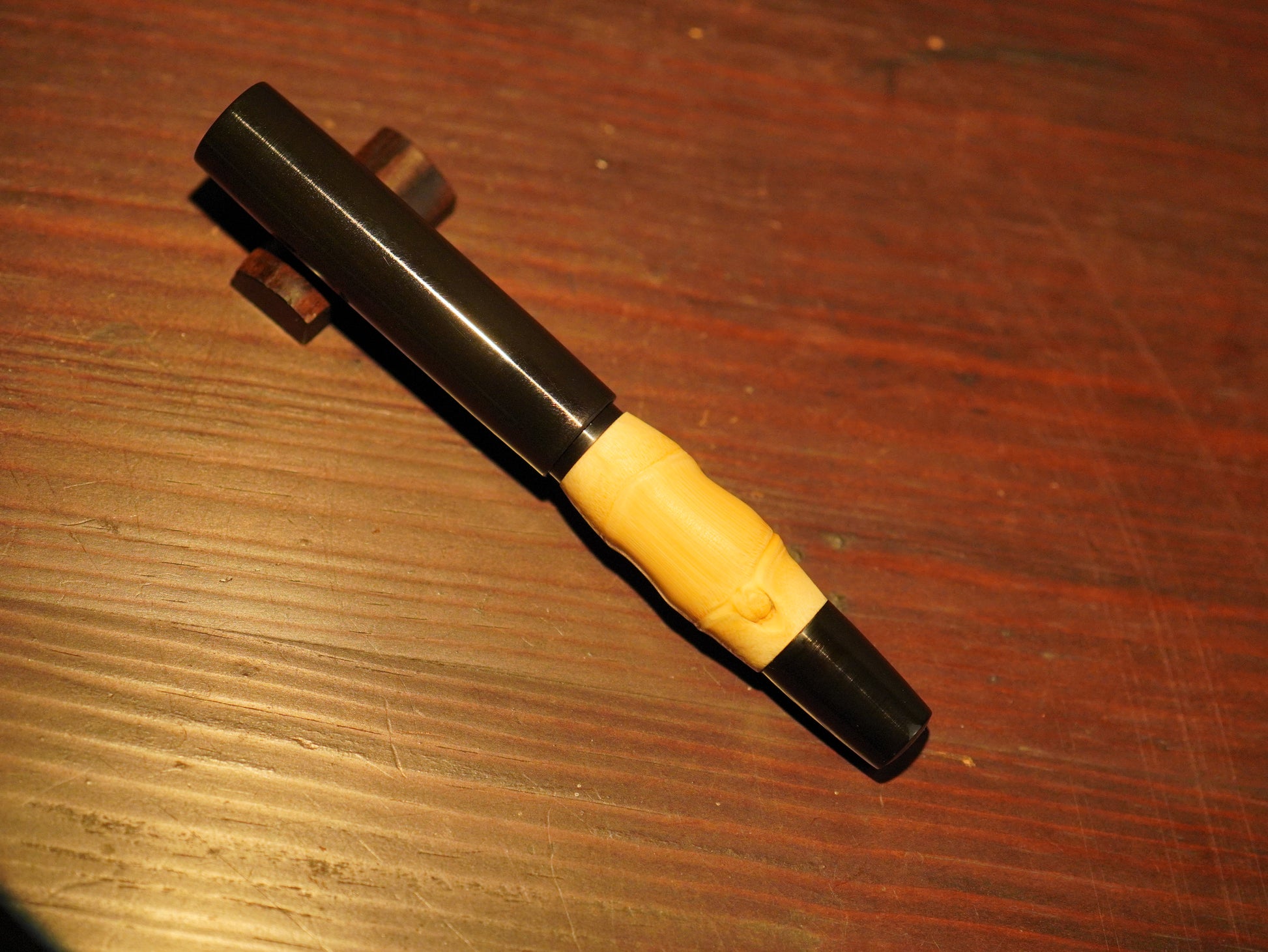 ショート+に布袋竹を採用しました。この杢軸とは少し違う触感が心地良い…気がつくと人差し指と親指の腹の部分で撫でている。少し想いに耽っていると、また指で撫でている。これは思索にはちょうど良いかもしれない。