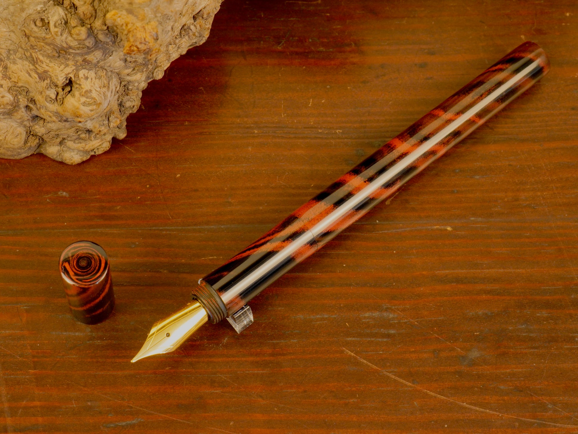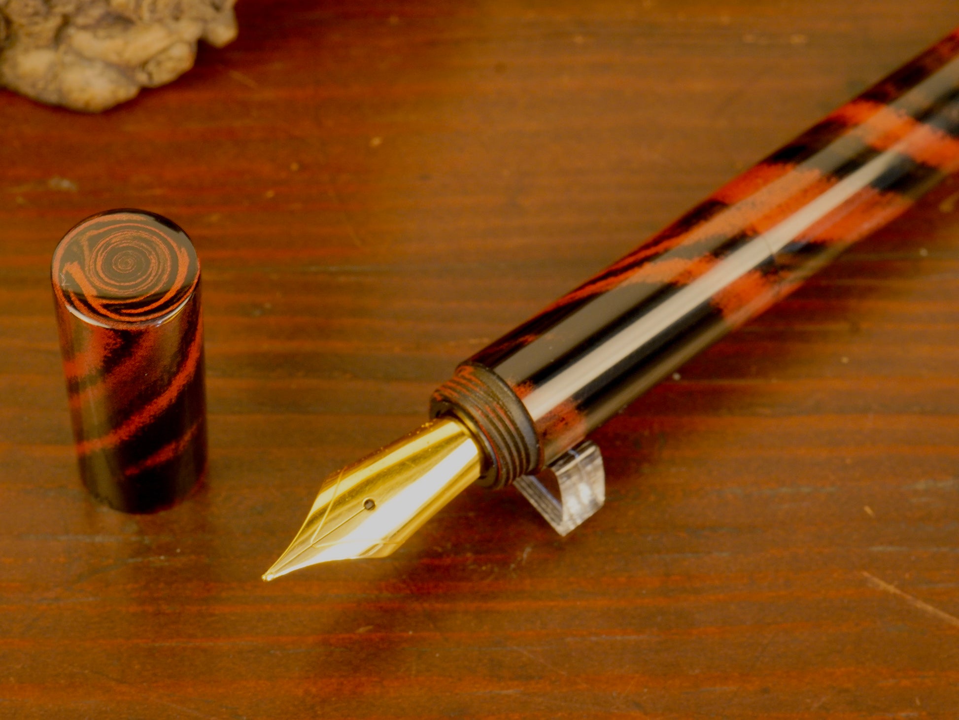 ブラックとレッドの渦巻きがとても美しい。クラシックで新しいタイプの万年筆です。