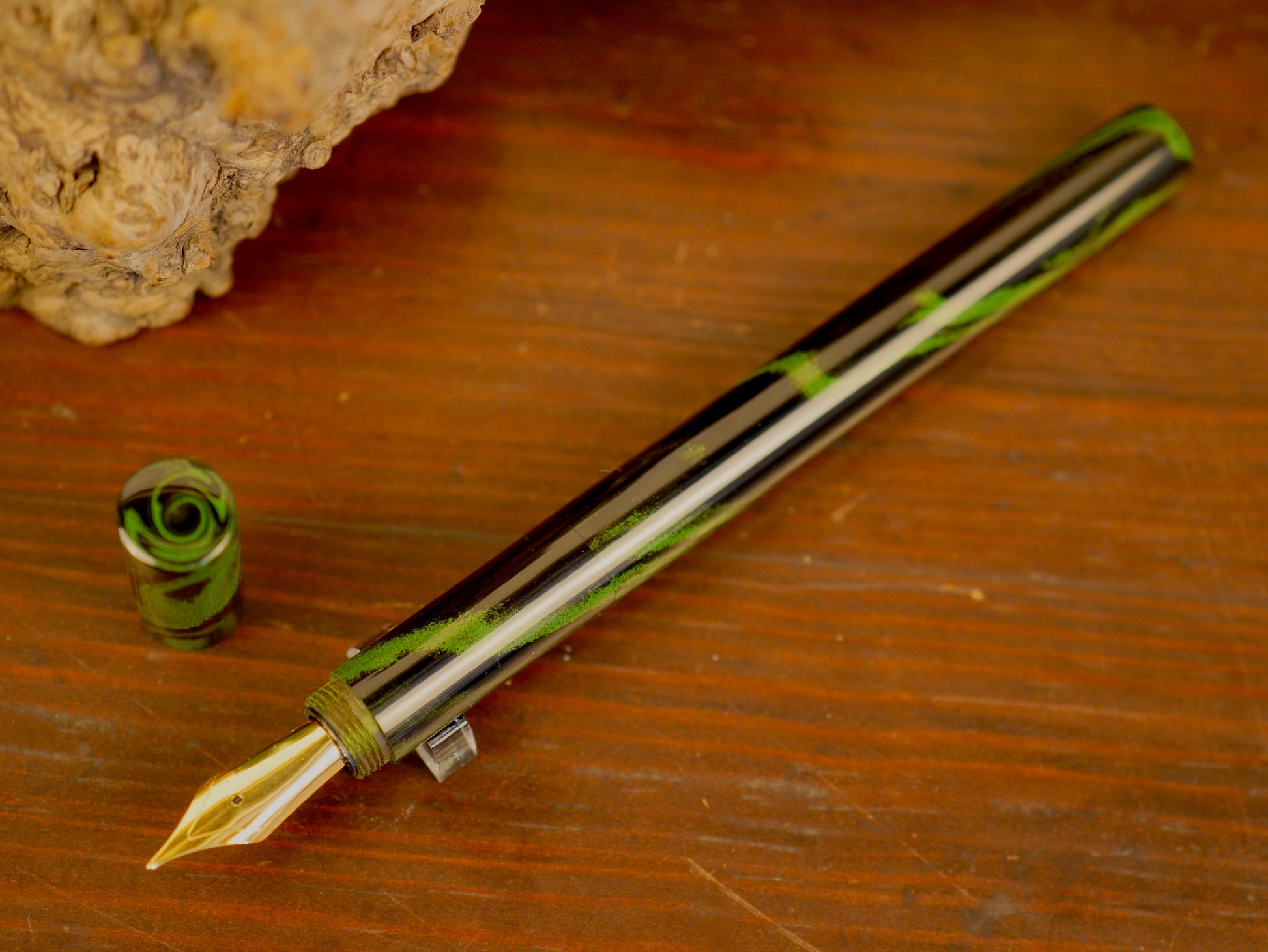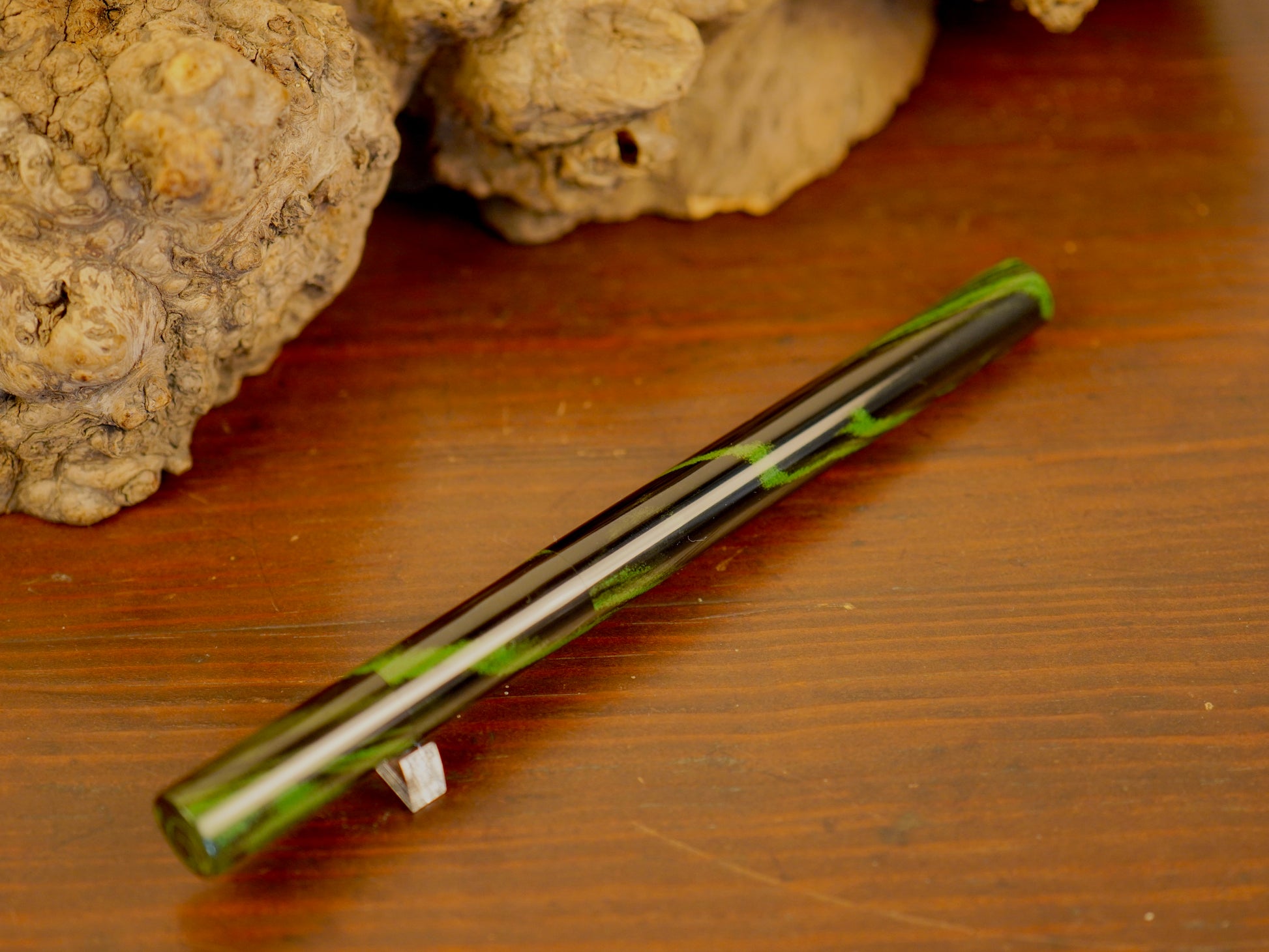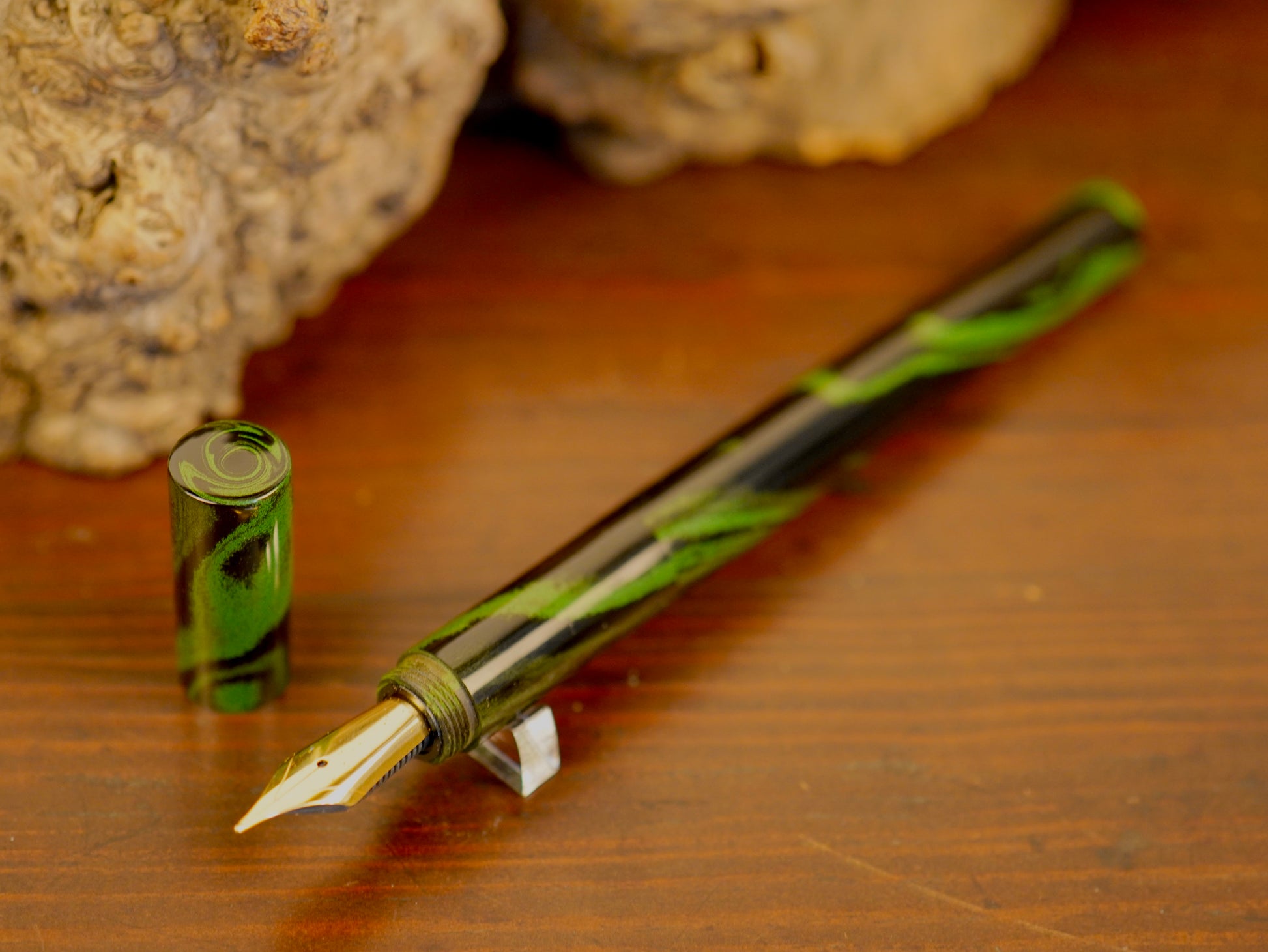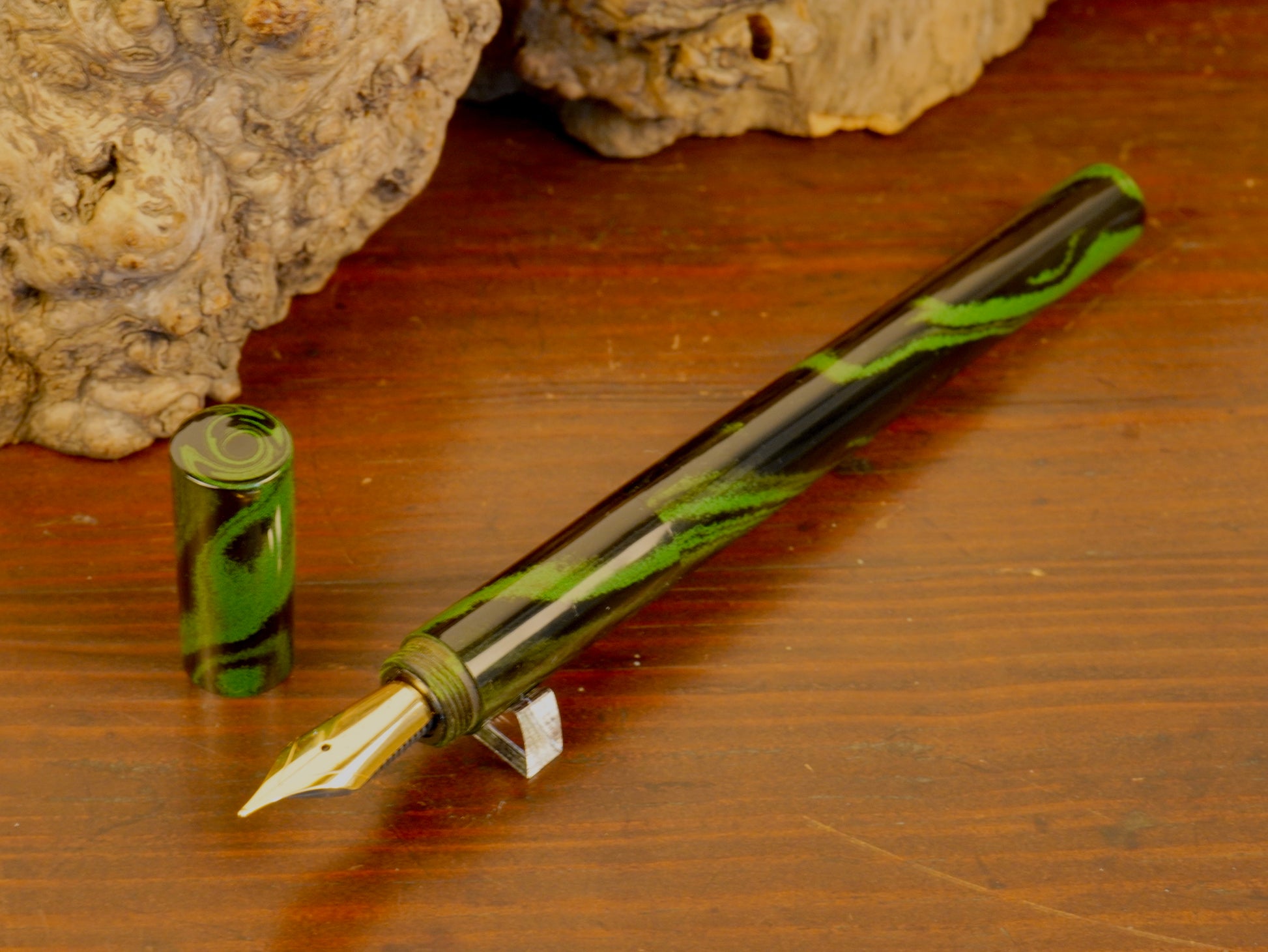 ブラックとグリーンの渦巻きがとても美しい。クラシックで新しいタイプの万年筆です。