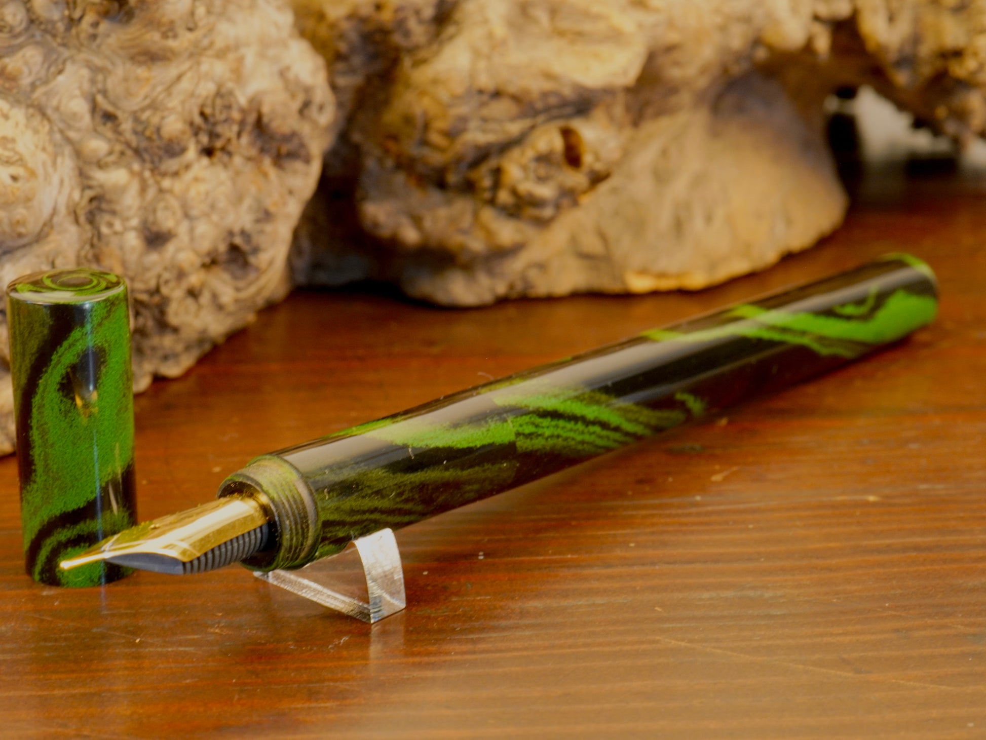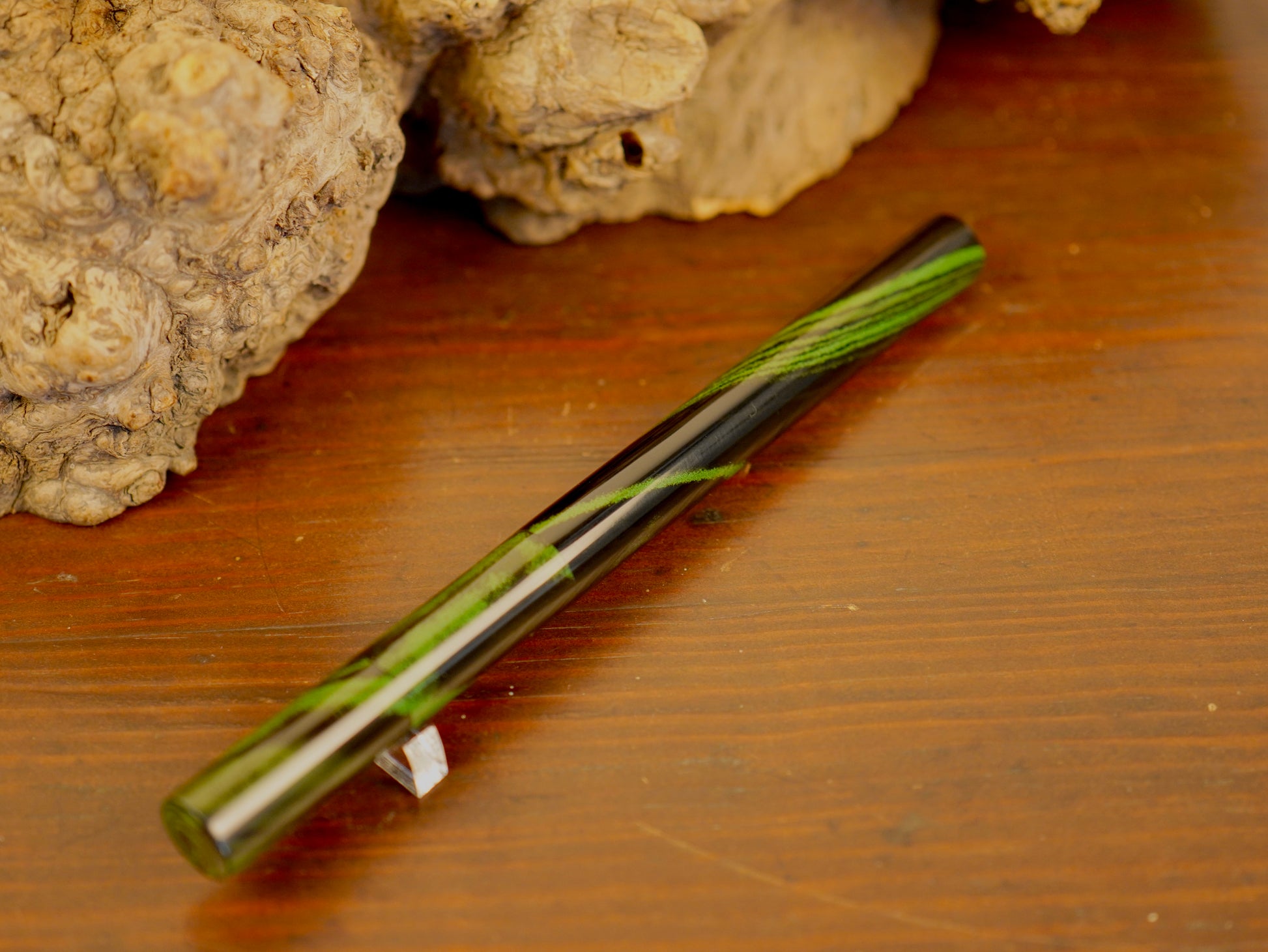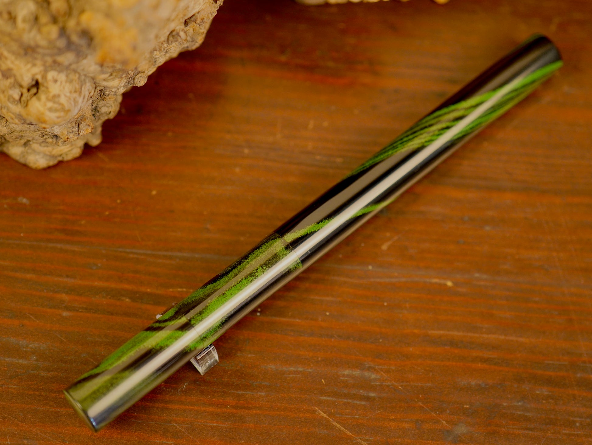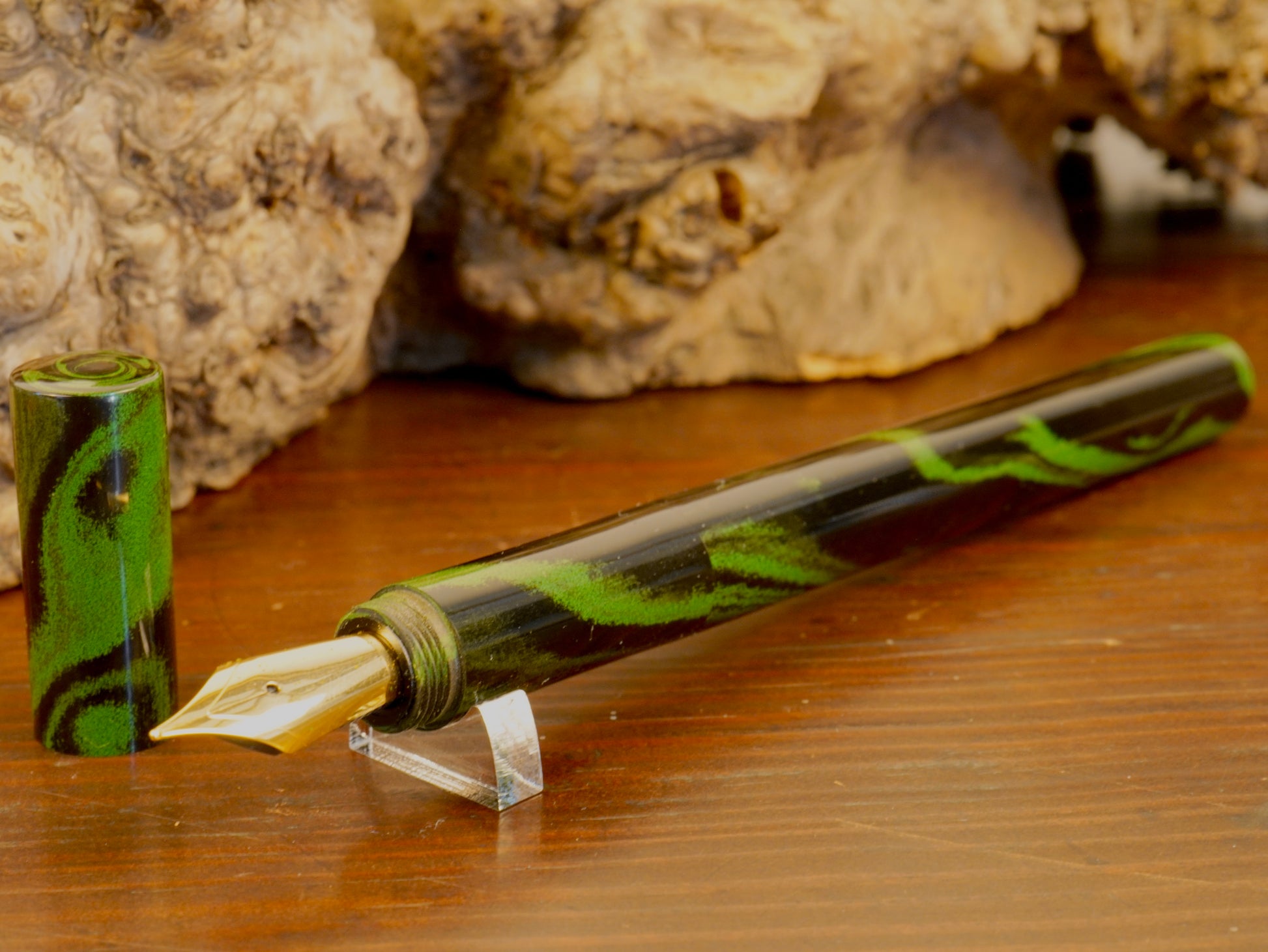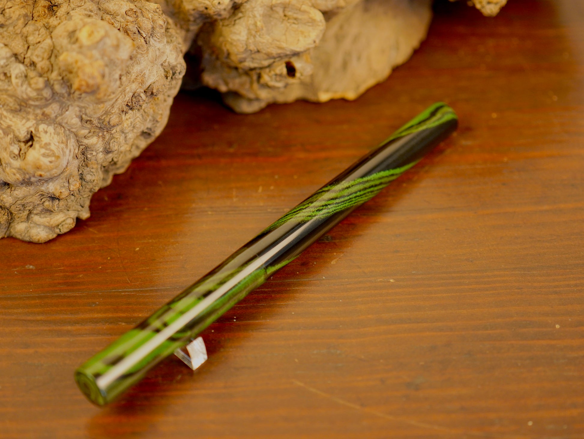 ブラックとグリーンの渦巻きがとても美しい。クラシックで新しいタイプの万年筆です。