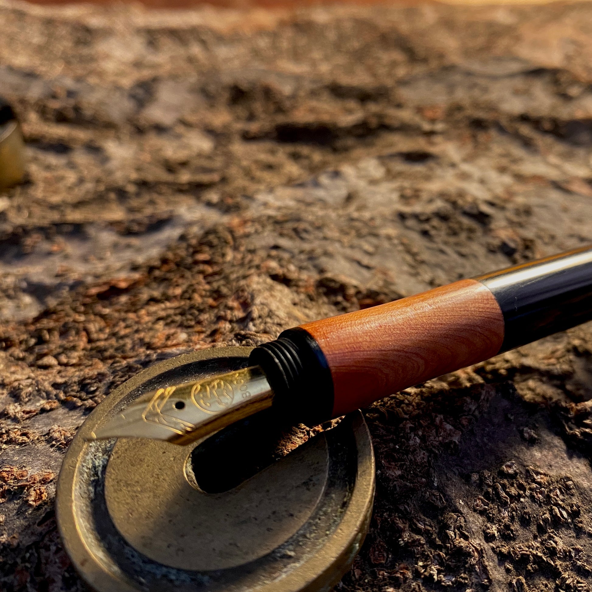 ペン先から万年筆の心臓部とも言えるペン先には、デルタ、ビスコンティ、カランダッシュなど世界の名だたるメーカーでOEM採用されているBock社。最新の工作技術によって作り出された、高品質の樹脂製ペン芯は、ニブをしっかりと支え安定したインクフローを実現しています。