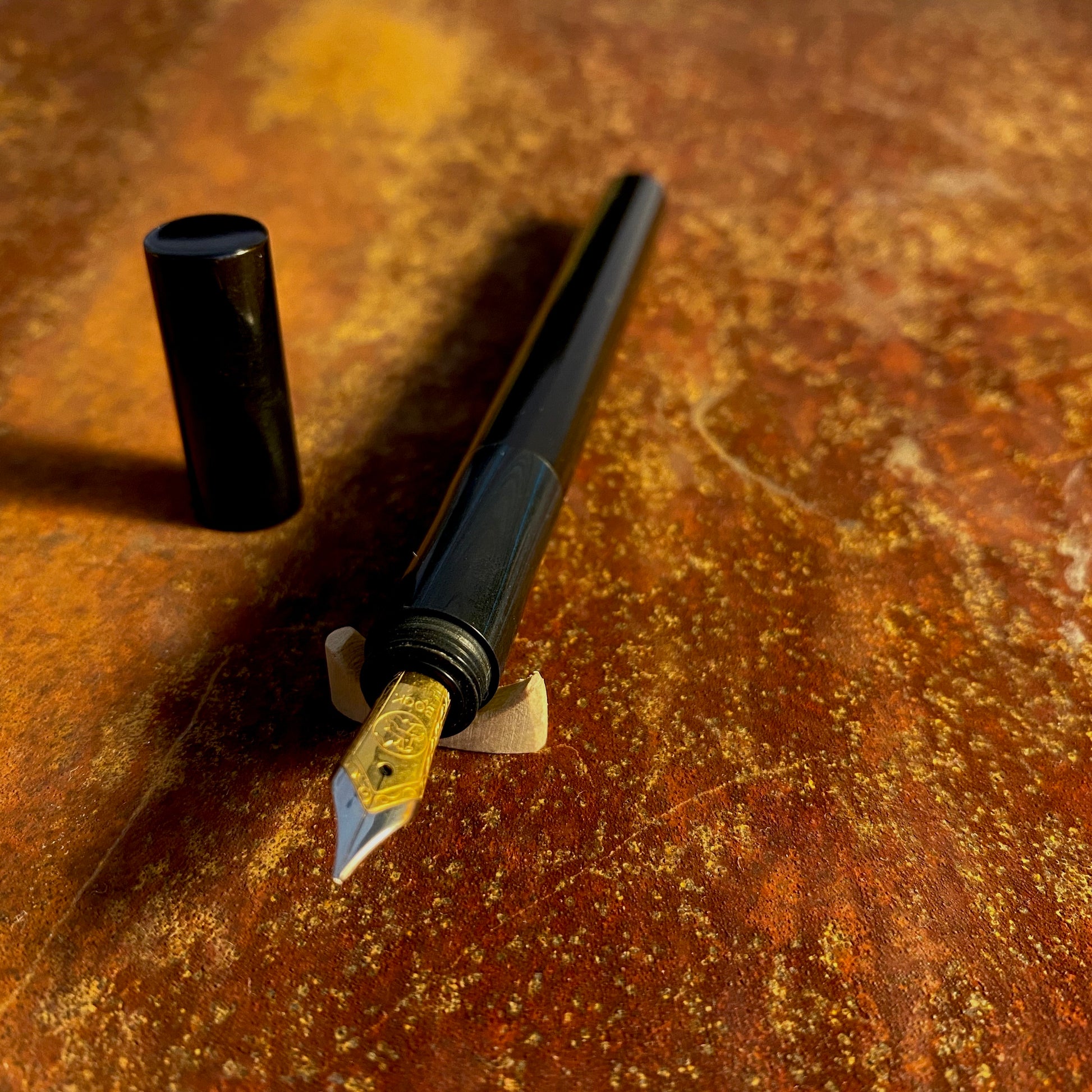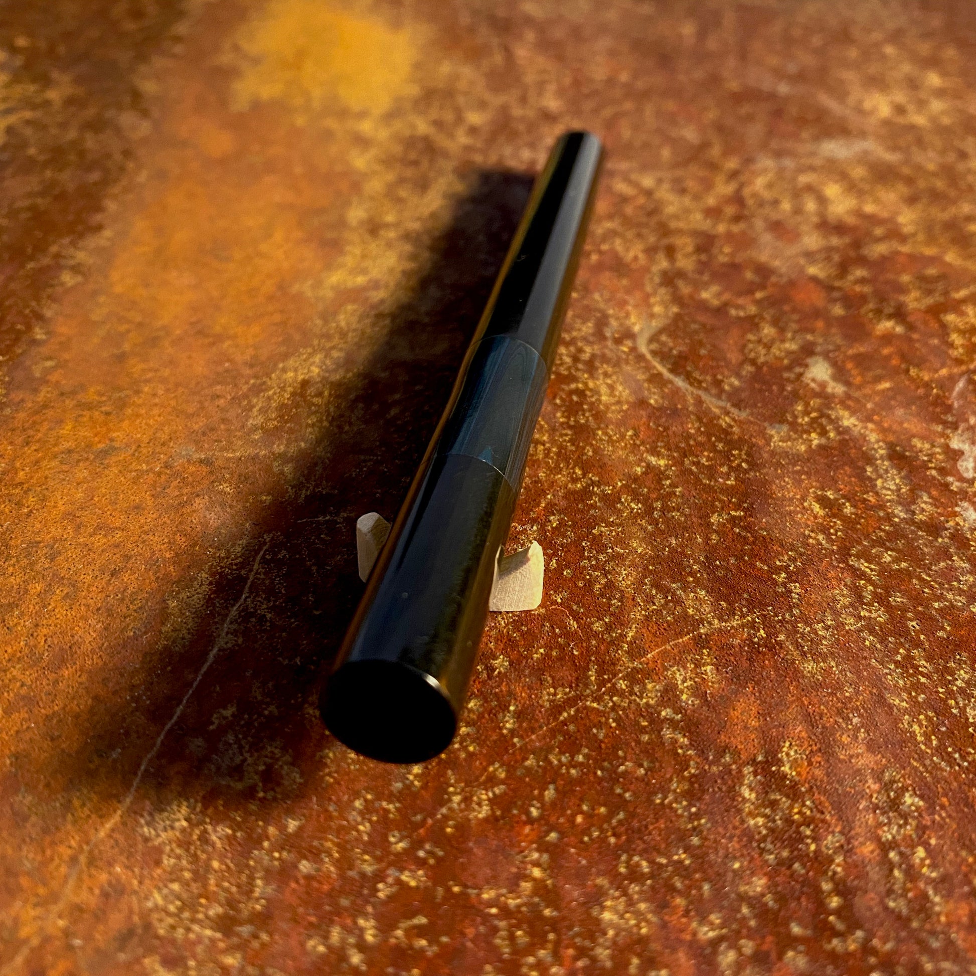 軸径11.5mmの細さと僅か15gの軽さ、優しいエボナイトの触感、首軸のわずかな窪みが、しっかりと手になじみ長い時間の筆記でも疲れを感じさせません。